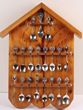 Shooting related. 3 wooden wall display cases with a total of 79 souvenir/prize spoons. About half of these are diff schools with enamel badges, the other half are rifle club spoons. Comes with a school related car bumper badge in blue, red & white enamel. GC. Interesting collection. (80 spoons) |
