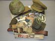 WWII era collection. Hard to find items such as 1945 meal mess tray, Owen scabbard, 07 bayonet grips x 2 pairs, pattern 37 gear, eating utensils, khaki cap, despatch riders helmet shell, various belts, photos, rank insignia, book 'Wavell', gloves, kit bag lock & puttees. Instant collection or display. (Total 23 items) |