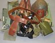| 20150 Click to enlarge photo | C1945-65 equipment & accoutrements inc pr of WWII brown ankle boots, steel helmet, water bottle, belts, aircraft harness, brown leather belt with snake clasp buckle & bayonet frog, officer's belt, gas mask bag & sm mantle plaque. gVF (22 items) | SOLD at A$120 | ||