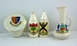 Great Britain: 1914-18 Stoke-on-Trent 'Arcadian China' Patriotic Souvenir lot. Bearing city Coat of Arms in forms of: Army Patt 1902 Visor cap with enamel decal to top of the arms of Great Yarmouth 36mm(H) x 60mm (DAI): Miniature jug bearing the enamel Arms of Roysth b/w 2 'tar jacks', 81mm(H); artillery projectile bearing enamel Arms of Aldershot, 69mm; artillery projectile bearing enamel Arms of Leven, 70mm. Minor wear to gilding. gVF/aEF (4) |