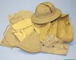 Indian sub-continent service lot. 1939 Indian pattern sun helmet with East Lancashire hat badge. Military issue Indian skull cap, khaki drill mittens, a canvas bag, 1956 dated cloth ammunition belt & two Patt 37 ammunition pouches. GC. |