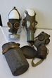 World. cWWII non-combatants gas masks/filters (3 diff) for Germany (Luftschutz), USA & France (?) with its paper mache container. Some minor flts, condition is average to good. The Luftschutz mask is complete but has some dents in the filter & a 1cm tear from a fold in the rubber. (3) |