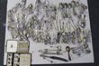 Silver plate. Cutlery. Inc spoons, forks, carvery set, sugar/ice tongs. Various sizes, 1930s-60s. All appear to be made by Dixon & Son. Several styles are represented here, 22 pieces are art-deco pattern (cake forks, spoons, carving set, serving forks & spoons). G-VGC. (209) |