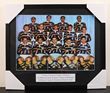 Rugby League. Parramatta 1967 framed photo of First Grade Team. Includes Peter Peters, Paul Gibson (became MHR NSW Parliament), Ken Thornett, Bob O'Reilly (first year), Dick Thornett, Ron Lynch. Overall dimensions 510x441m. VGC. |