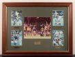 Rugby Union. Wallabies World Cup 1999 Winners Framed collage of 5 photos, showing Central image of player's elation at full time, then 4 action photos of Ben Tune, Matt Cockbain, Daniel Herbert & Captain John Eales, ea autographed. Minor fade but still attractive. Overall dimensions 500x670mm. VGC. |