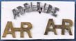 South Australia Adelaide Rifles brass shoulder title pr (2) (described by vendor as such) pre 1900? Plus a chromed 'Adelaide' title of unknown origin. All lugs present at rear. The 'AR' titles show wear from use & cleaning. GC. (3) |