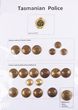 Tasmania c1890s-2000 & other Police & Goal/Prison Services buttons & misc Police badges (5). Inc KC Tasmania Police (18), Tasmanian Goal, WA Goals QVC, SA HM Goals QVC, QVC VIC Pol Force (5), KC VIC Pol Force (3), QC VIC Pol Force (5), KC NT Police (5), NT Correctional Services. Plus 'VICTORIA POLICE' metal titles & TAS Police enamel badge (small), lapel? & Constable's ID number. Mostly G-VGC. (45) |