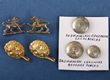 Tasmania c1870s-1912 pre Federation white metal badges & buttons. Plus brass lion head hat hooks (2, also used in Tasmania). Inc Tasmania Local Forces button (L), Tasmania defence Forces buttons (1 L & 1 S). A nice Lion collar badge with 2 lugs facing left & another facing right (but with only 1 lug). (7 items) |