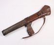 | 20642 Click for more photos | Army. Rifle Bucket. Brown leather rifle bucket, probably WWI vintage. Maker marked but no clear date. It is unit marked to RASC but the 'R' may be a later add on when the ASC became the RASC in the 1920s (the 'R' looks to be heavier stamp to the 'ASC'). GC. Should clean up nicely. Hard to find. | SOLD at A$150 | ||
