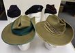 | 20663 Click for more photos | Army. Slouch hat with added green edging, green puggaree, late manufacture, no dates, size 6½. Possibly for unknown Cadet unit. Slouch hat with khaki, brown, grey puggaree, slight (2cm) tear to top at rear crown area, with chin strap, no date or size. Sidecap dark blue with purple piping to top edge. Sidecap dark blue with red piping. Beret with embroidered badge for Riverside Girls High School. Fair-GC. 5 interesting hats. (5) | SOLD at A$95 | ||