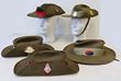 | 20674 Click for more photos | Army. Slouch hats, khaki (5) in various conditions & sizes. Some have badges, all have puggarees. Two have chin straps. Issued hat 1986 & badge on the front to Catering Corps, rising sun to side. Named & lightly used. Another dated 1996 with rising sun to side & green puggaree to AANS. Near excellent condition. Well used slouch hat with felt Artillery colour patch to the side. Needs a clean. As a 'crack' to the brim. Two Kings School hats with puggarees & badges (one is chromed, the other white metal). Hats have damage & one has water staining. Can be restored somewhat. A cheap lot of slouch hats, most with badges. (5) | SOLD at A$140 | ||