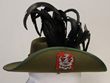 | 20681 Click for more photos | Army. Slouch hat khaki with green cloth around the brim, red puggaree, emu feathers & Royal NSW Lancers badge on red felt backing. Hat made in China! Pus Pillbox style hat with later added peak, white button to top, some tears to rear of hat, no sweatband, brass crossed swords to front. GC, 2nd Fair. (2) | AVAILABLE at A$80 | ||