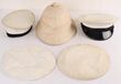 | 20695 Click for more photos | Navy. Peaked cap with vinyl top, RAN ratings cap with vinyl top. RAN cloth cap cover, RAN vinyl cap cover. White Wolseley pattern fibreglass helmet. Some discolouration o/w GC. (5) | AVAILABLE at A$70 | ||