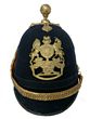 | 20736 Click for more photos | Army.1878 Pattern 'Blue Cloth' Home Service helmet for other ranks, Artillery. Cork body with dark blue/black cloth covering (4 seams). QV crown Royal Artillery other ranks brass helmet plate. Comp with its original brass fittings (OR's ball mount, cruciform base, rosettes & leather backed chin chain). Size 6 7/8. Some markings to interior but most illegible & no dates evident. Comp with sweatband. Cork with some crush, mainly to back, but helmet still retains shape. Small tear to rear visor. VGC. A good restoration. Reserved to sell. (P) | SOLD at A$500 | ||