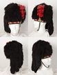 | 20739 Click for more photos | Army. ca1900 Royal Highlanders "Black Watch" Enlisted Man's full dress feather bonnet. Wire frame overlaid with black ostrich feather. 4 x feather "tails" to side with red feather hackle to opposite side correct for Regiment. Cork body band with wool diced band (red/green/white) with adjustment buckle to rear & black leather chinstrap. King's crown white metal Black Watch badge to side. Liner comp. VGC. Scarce (P) | SOLD at A$800 | ||