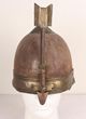 | 20752 Click for more photos | Egypt. ca 1870 Khedive Guard helmet, one piece steel skull with neck protector, blossom shaped crown rosette with iron crescent. Adjustable nasal protector in the form of an arrow fixed by a star shape screw. Shell only, no chain mail or other adornments. Item reputedly brought back by Major 'ET Pascoe' AIF. Rim needs a little TLC overall surface rust o/w a quite presentable & rare helmet. Vendor cost $1900 (ticket included). Historic talking point. | AVAILABLE at A$900 | ||