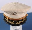 | 20779 Click for more photos | USA. Marine Corps. ca.1955-65 Vietnam War USMC officer's white peaked cap for senior officer. White top with black cloth covered peak which has bullion row of oak leaves. Bi-metal hat badge & bullion chin strap. An impressive example. VGC | SOLD at A$150 | ||