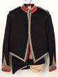 | 20782 Click for more photos | Army. Victorian era Lt Col (Artillery) black mess dress jacket, red felt vest, black trousers. Silver gilt plaited cord epaulettes secured by QV Artillery buttons. Crown & part pip rank present only. Elaborate red felt & gilt cuff finials to jacket. Gilt ribbon on edges of jacket, vest & seam of trouser legs. Tailor's tag on vest & trousers to SHEIRLAW + Co, 16-18 HENDLEY ST ADELAIDE. Uniform & clothing supplier in Adelaide from late C19th. Part Lt Col rank missing. Good for age, freshly dry cleaned. Small section of gilt trim adrift. Rare South Australian Artillery mess dress jacket, vest & trousers, Victorian era to a Lt Col. | SOLD at A$400 | ||