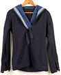 | 20888 Click for more photos | Navy RANR (NS) Ordinary Seaman's wool blues top & pants (winter uniform). Red insignia to L sleeve RANR - (NS) indicating 1950s National Service in the RANR. Those who opted for RAAF or RAN NS were only considered if they volunteered to serve outside Australia. GC minor moth damage. Quite a rare naval uniform to the RANR (NS) which operated between 1951 & 1959. Navy dress jacket, double breasted complete with all QC buttons. Rank insignia to Petty Officer with 2 chevrons & technical trade propeller gilt badge over letter 'P'. May have had prior Army Service as Army gilt button sewn on sleeve below gilt trade badge. CGCF tag to back of collar. VGC. | AVAILABLE at A$100 | ||