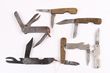 | 20981 Click to enlarge photo | Pocket Knife collection of 7 Australian made folding knives, made by Whitislowe in Adelaide. Inc A WWII Military issue knife. Five diff styles represented. Interesting lot from a well known South Australian maker. Being metal, all show wear & some corrosion. Two knives are heavily sharpened or have deeply rusted blades, other five are quite presentable. Interesting Australian knives, collectable in their own right. (7) | SOLD at A$110 | ||