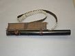 | 21008 Click to enlarge photo | Laos. Crossbow quiver from the Laos region. c.1900-40 Bamboo & basket weave rattan & shell adorned cross belt. Dark bamboo pipe for holding arrows & wickerwork basket on side. A very well made tribal item. EF. | SOLD at A$200 | ||