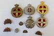 | 21041 Click for more photos | New South Wales Military Forces 1880-1906 metal helmet plates (3) collar badges (2) 1 missing a lug. Victorian Helmet plate plus Australian Commonwealth Horse Rising Sun badge Type 1 (1), Type 2 (2). All copies. Useful for re-enacting etc. One of the NSW helmet plates is particularly detailed & sturdy. G-VGC. (11). | SOLD at A$170 | ||