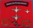 | 21509 Click for more photos | Army. Parachute Regiment Officer's hat badges (KC & QC), collar badges (KC & QC) & shoulder titles c1942-70s. Inc cWWII die cast Officer's silver metal KC hat & collars, QC die cast silver metal Officer's hat badge with QC bronze service dress collars (2), brass "Parachute Regiment' titles with backing plates (2) & a cloth 'Parachute Regiment' title. VGC - EXC condition, complete with all lugs etc. (8) | AVAILABLE at A$150 | ||
