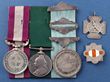 1881-1902 Pre-Federation Victorian Local Forces LSGC group of 3. Victorian Volunteer Long & Efficient Service medal (type 1) impressed 'P. KERR. 1881', Volunteer Long Service medal 1895-02 (VR), engraved 'PATRICK KERR, LATE SERGT-MAJOR. VOL ARTILLERY'. Also comes with a highly attractive sports/prize Silver medal won by 'SGT KERR, JUNE 1874'. comp with silver fittings to the ribbon. Also c/w a silver 'SMCC COMMITTEE' badge, sport prize medal for 440 yds foot race, & research notes. RARE. nEF. |